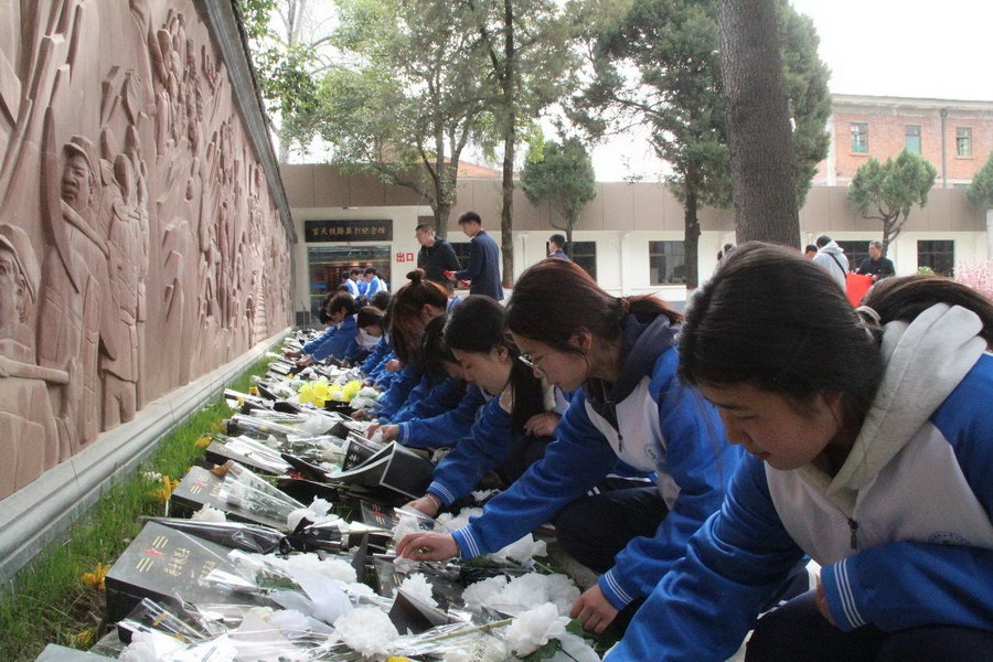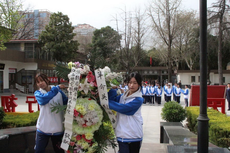 上午10时活动在宝天铁路英烈纪念馆烈士纪念碑前正式开始,全体师生齐唱中华人民共和国国歌,向革命先烈敬献花篮,集体默哀,以及擦拭烈士墓碑以表达对英烈的无限崇敬与深切哀悼。